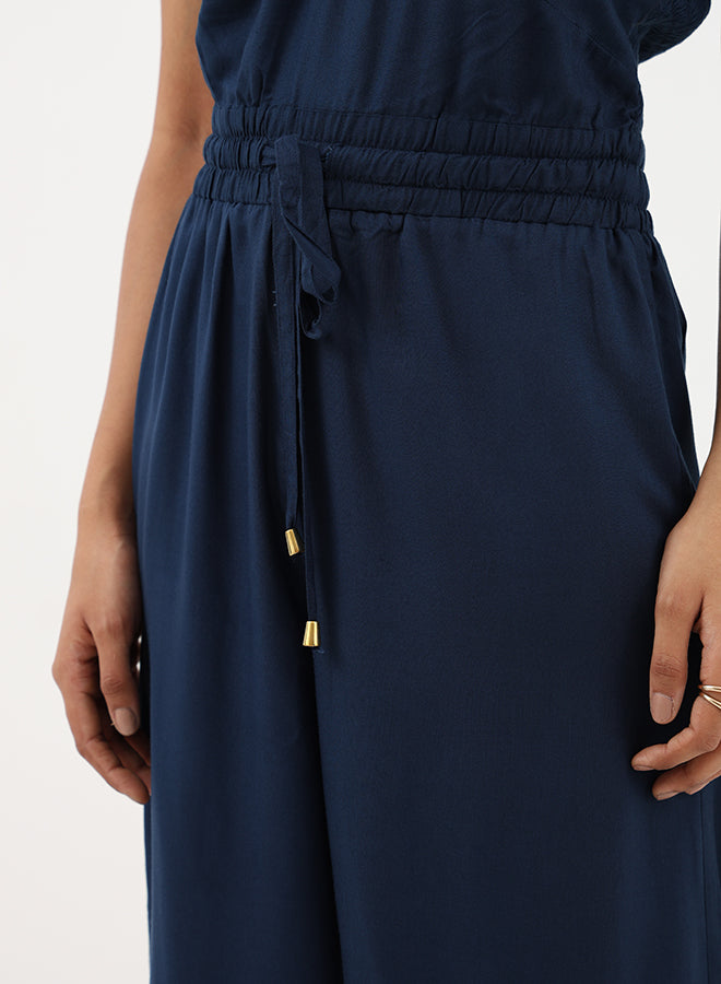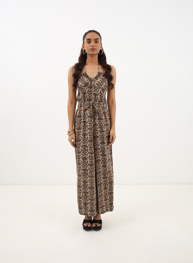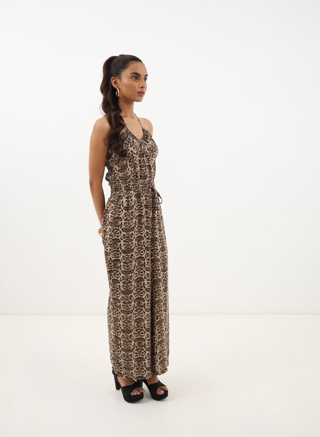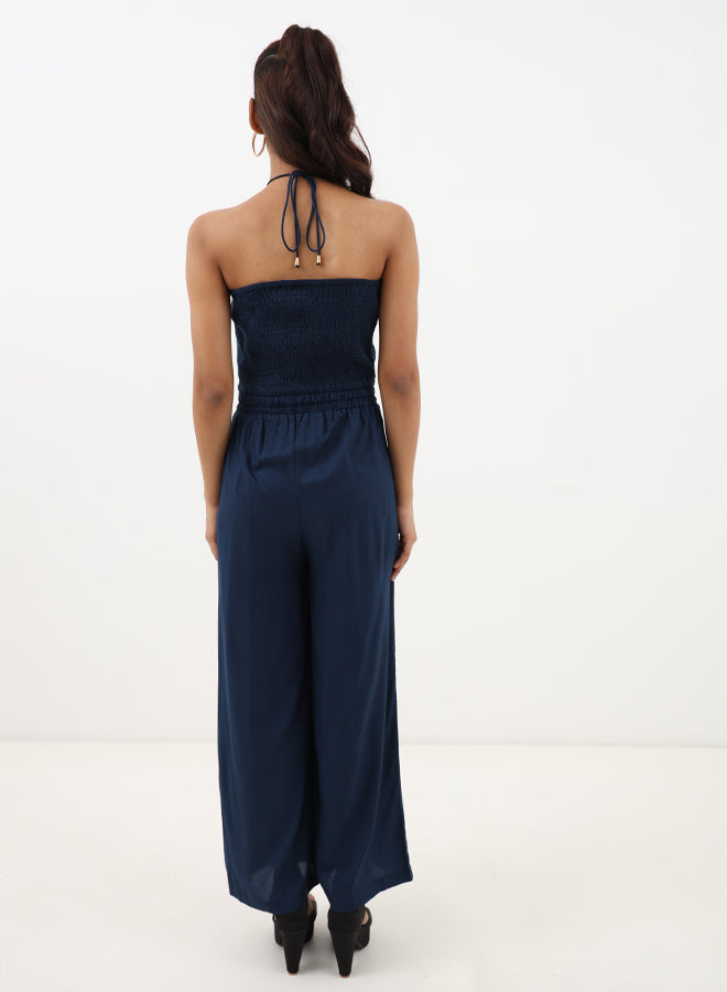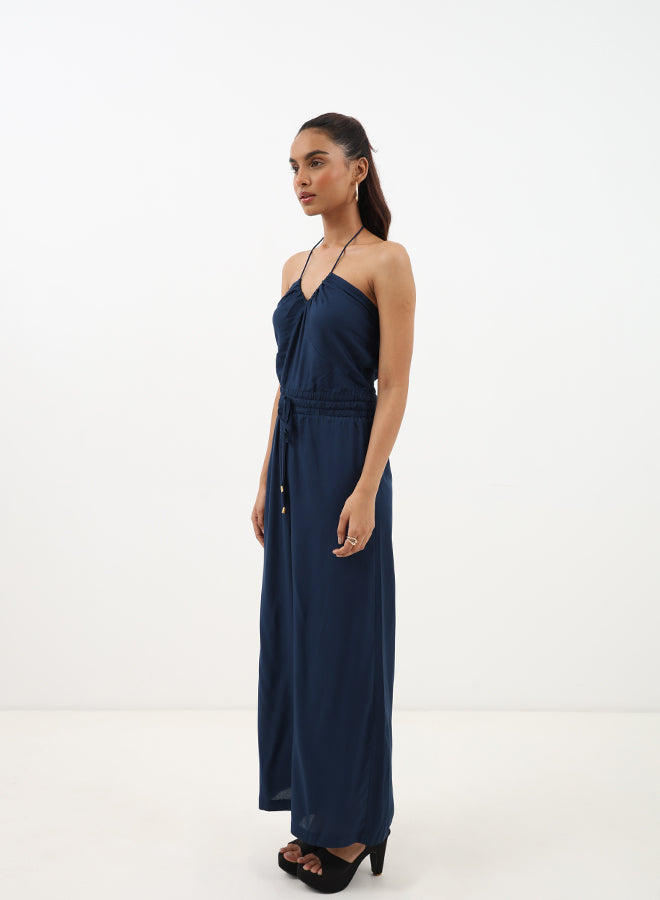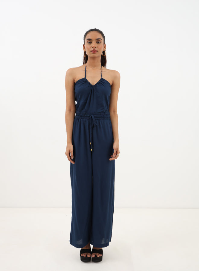 Discover effortless chic with the Midnight Muse Halter Jumpsuit, crafted from 100% viscose. Featuring a flattering halter neck and a drawstring waist, this jumpsuit combines comfort with elegance. Ideal for casual outings and evening gatherings, offering versatile style with a touch of sophistication.