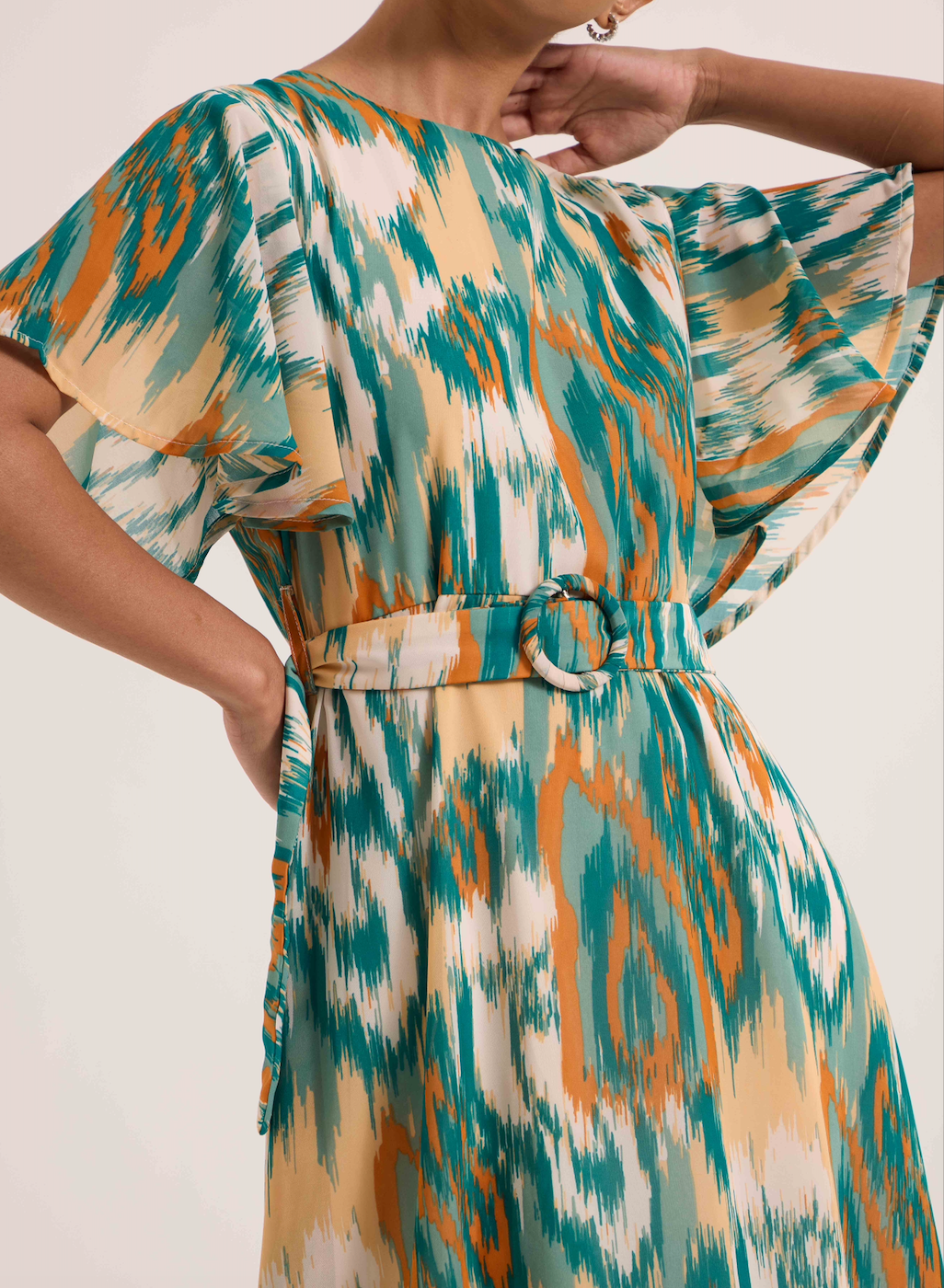 Playful and polished, The Maren is a nod to sun-drenched days. With its breezy sleeves and vivid abstract pattern, this silhouette moves with ease from day to dusk.